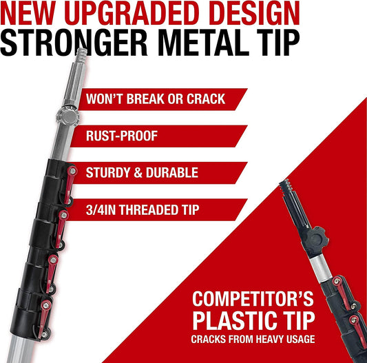 6-24 Foot Telescopic Extension Pole - Multi Purpose Pole, Paint Roller, Light Bulb Changer, Duster Pole, Antenna Pole, Hanging Lights, Window, Gutter Cleaning - New Metal Tip Design - Free Duster Incl