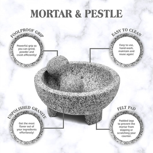 Mortar and Pestle Set – Stone Granite Grinder Bowl Molcajete