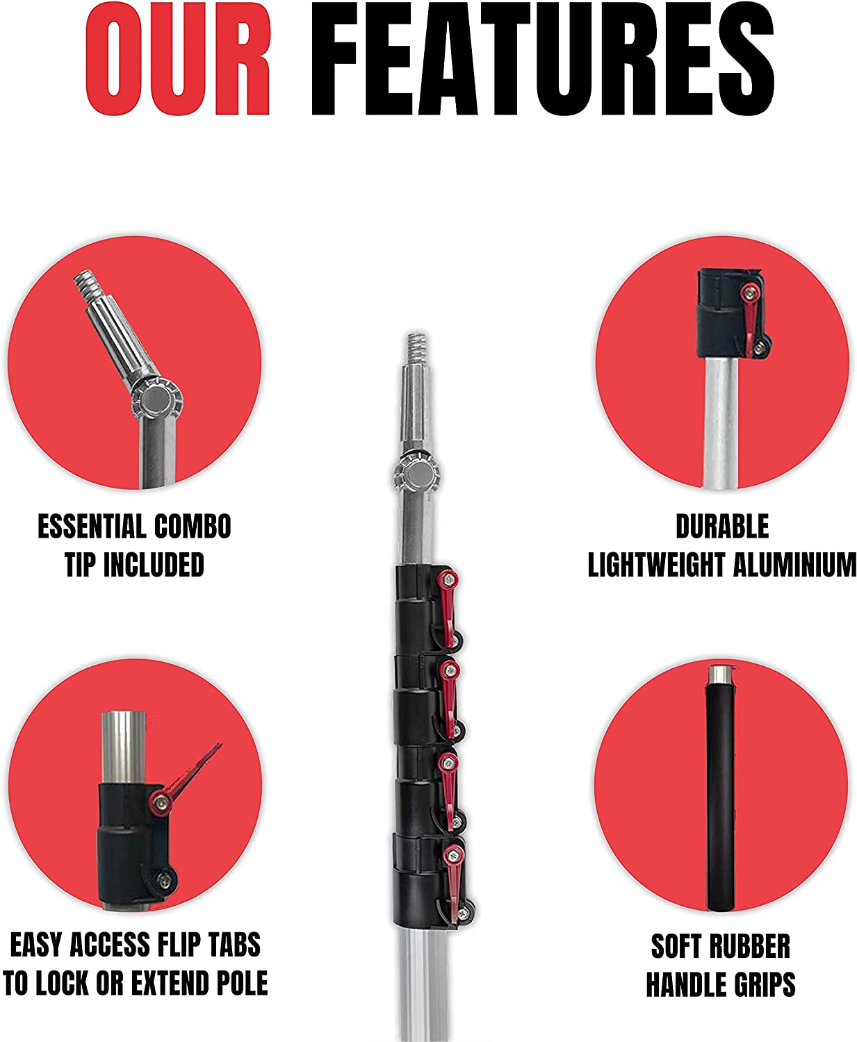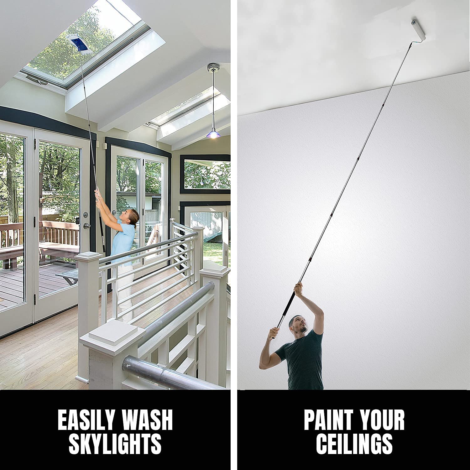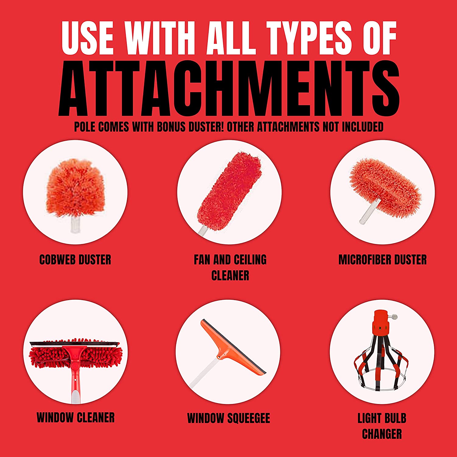 - The one-solution extension pole – Clean your windows, change the light bulb, clean the gutter, reach tall shelves, trees or fans with ease using our adjustable 6-24 ft telescopic pole. Complete all your “hard-to-reach” tasks without straining yourself or putting your well-being at risk.