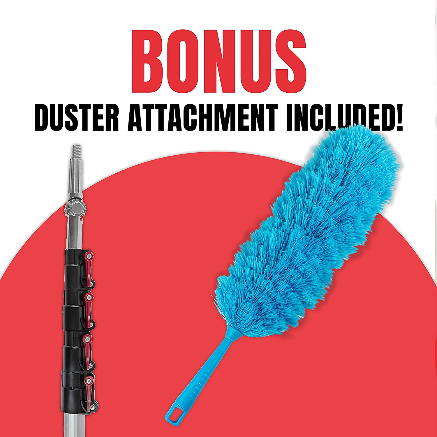 - Bonus microfiber feather duster – Since the most common use for our telescopic pole is cleaning and dusting, we decided to offer you a premium microfiber feather duster as a free gift, so that you can get started on your cleaning right away!