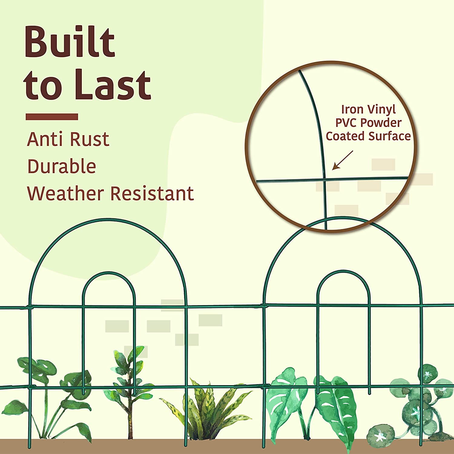 - Rustproof & weather-resistant patio fence: The iron vinyl pvc powder coated surface of the umien landscape edging fence is 100% rust-resistant and weatherproof, so you can easily install it in your garden bed, patio, backyard, front yard, flower bed, or garden without any worries. Made to last, each panel measures 18" high 19" wide 37 panels in total 58.6 ft long